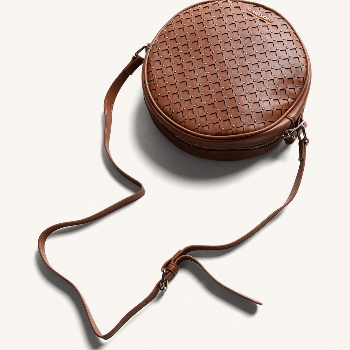 Τσάντα χιαστί με εγκοπές και λεπτομέρειες με τρουκς. Εσωτερική επένδυση και κλείσιμο με φερμουάρ. Μακριά λαβή.