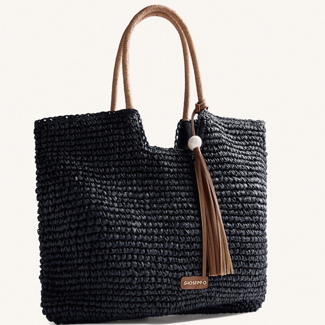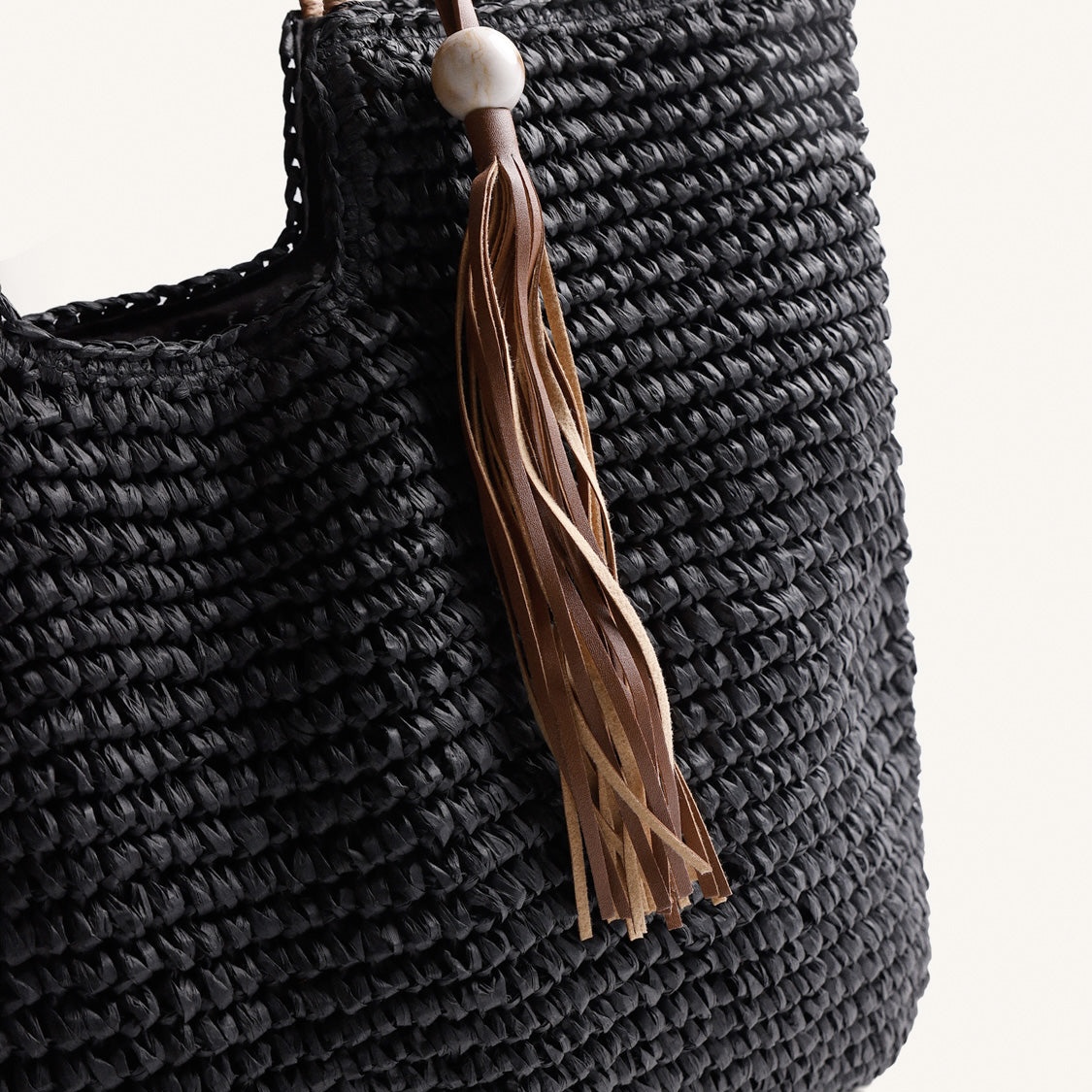 GIOSEPPO FRINGED STRAW BAG SORSOGON BLACK