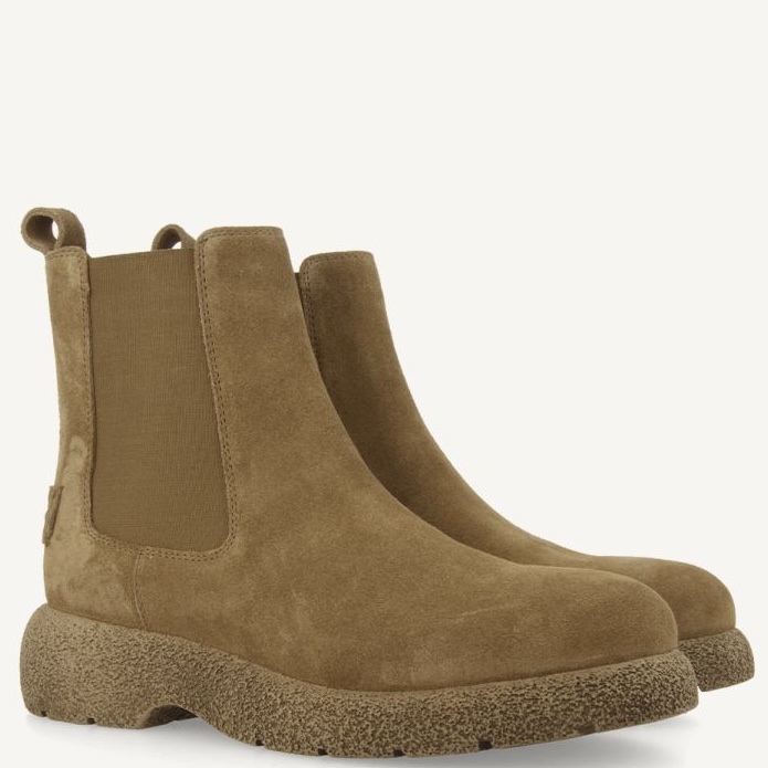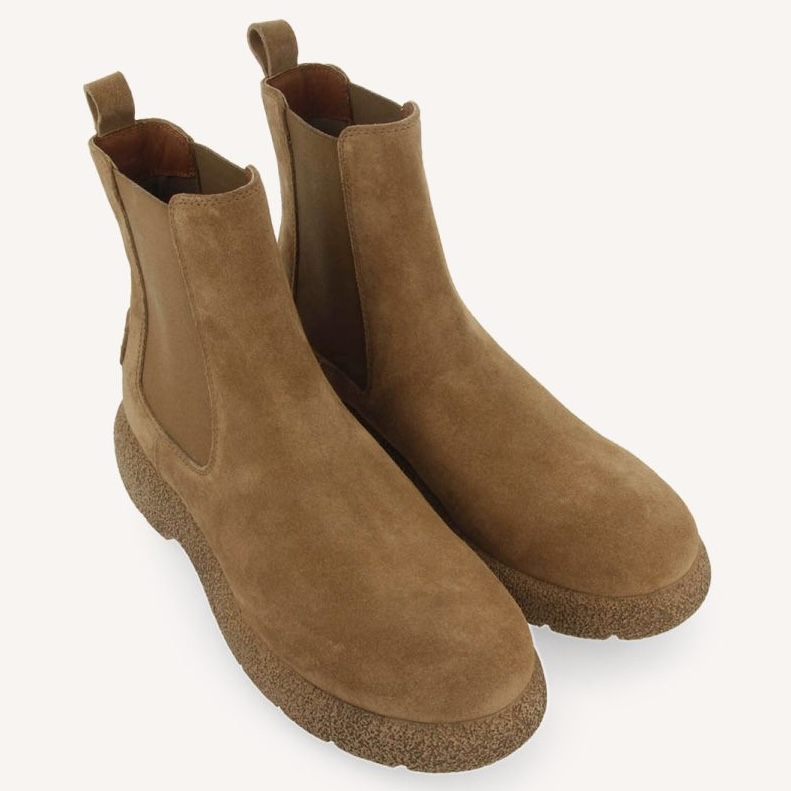 Η άνεση και η βιωσιμότητα πάνε χέρι-χέρι σε αυτό το μοντέλο. Μπότες αστραγάλου από σουέτ σε στιλ Chelsea, σε μπεζ χρώμα. Διαθέτουν εσωτερική σόλα με επένδυση από λάτεξ, σόλα από καουτσούκ και σόλα κατασκευασμένη από φυσικές ίνες.