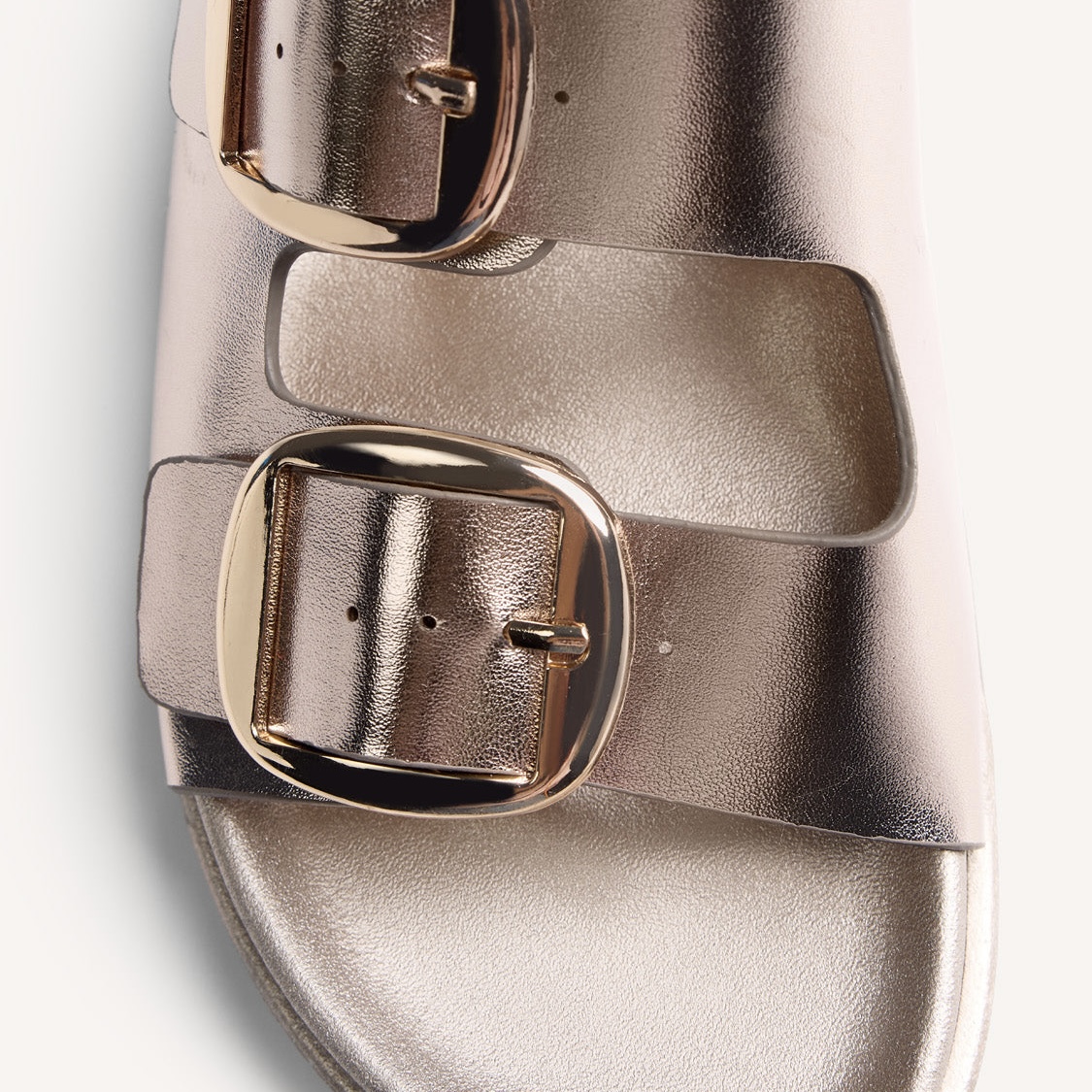 Σανδάλια με μεταλλικό φινίρισμα και αγκράφες. Διαθέτουν εσωτερική σόλα εμπνευσμένη από τη βιολογική επένδυση και εργονομικό σχεδιασμό για ομοιόμορφη κατανομή βάρους.