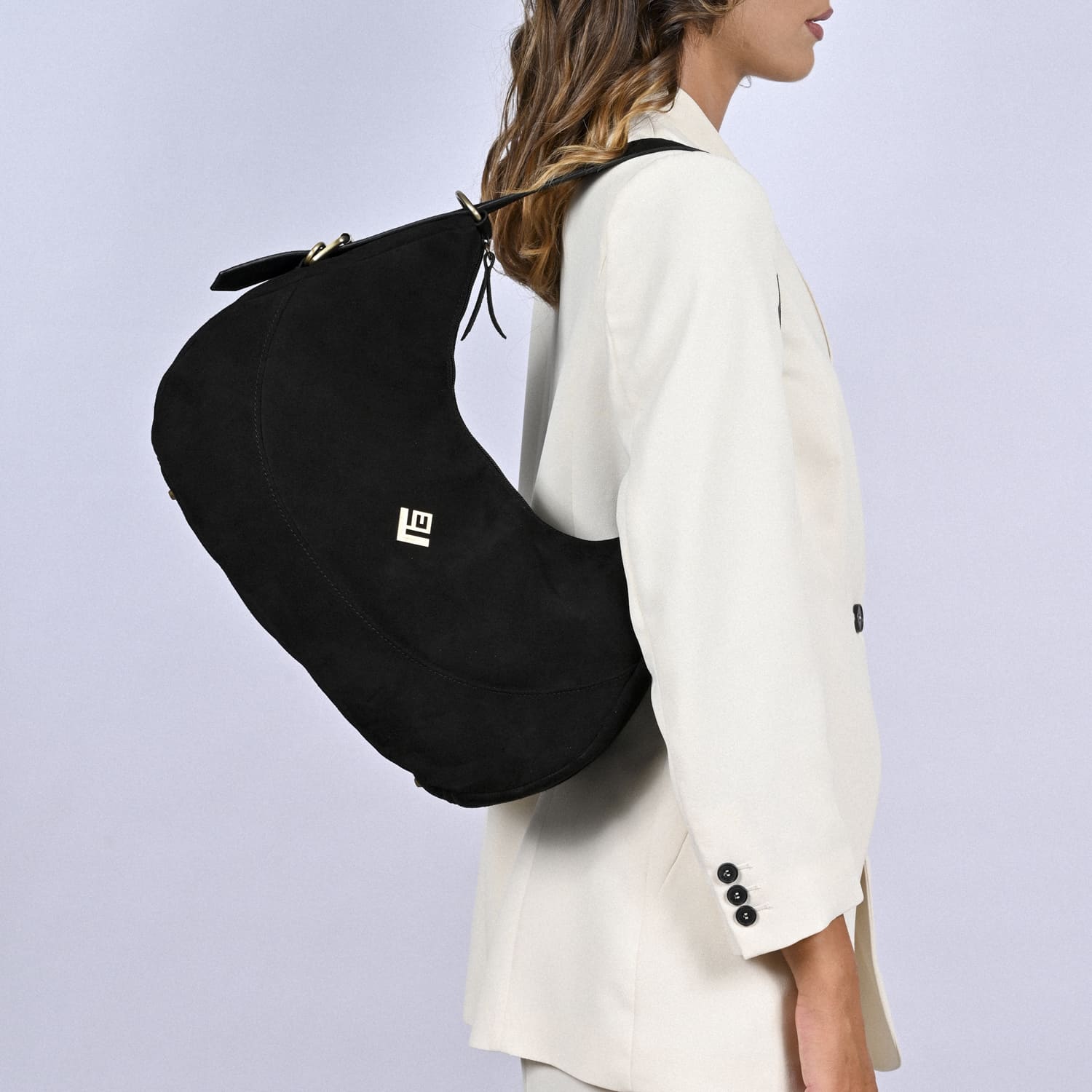 Κατασκευασμένη από 100% recycled suede leather, συνδυάζει ηθική επιλογή και υψηλή αισθητική. Οι δερμάτινες λεπτομέρειες και το φαρδύ λουρί ώμου εξασφαλίζουν άνεση και στιβαρότητα, ενώ το ευρύχωρο εσωτερικό της με υφασμάτινη φόδρα, τσέπη και ειδική υποδοχή κλειδιών προσφέρει πρακτικότητα στην καθημερινή χρήση.