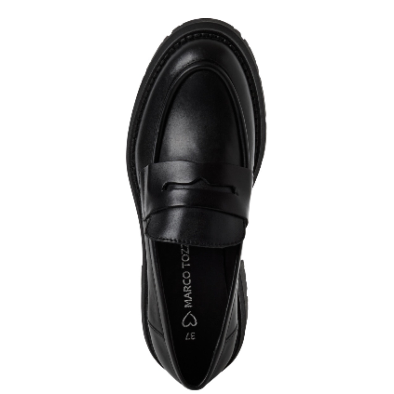 Marco Tozzi  Δερματινα Loafers σε μαυρο χρωμα  με εσωτερικο αφροδες πατακι τεχνολογιας Feel Me για ανετο βαδισμα.